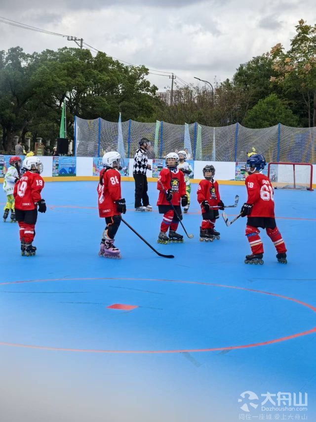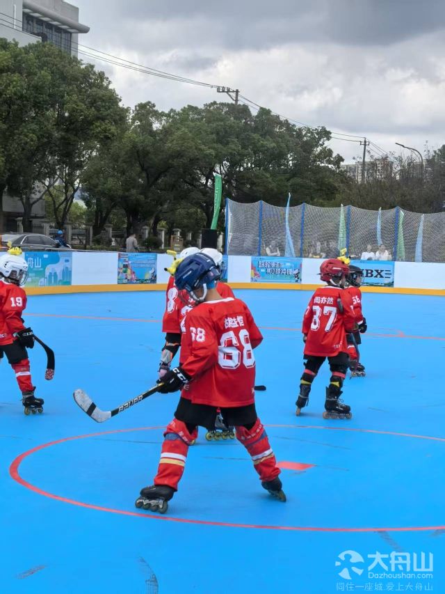 定海这里在搞轮滑球比赛,看着还挺热闹啊!