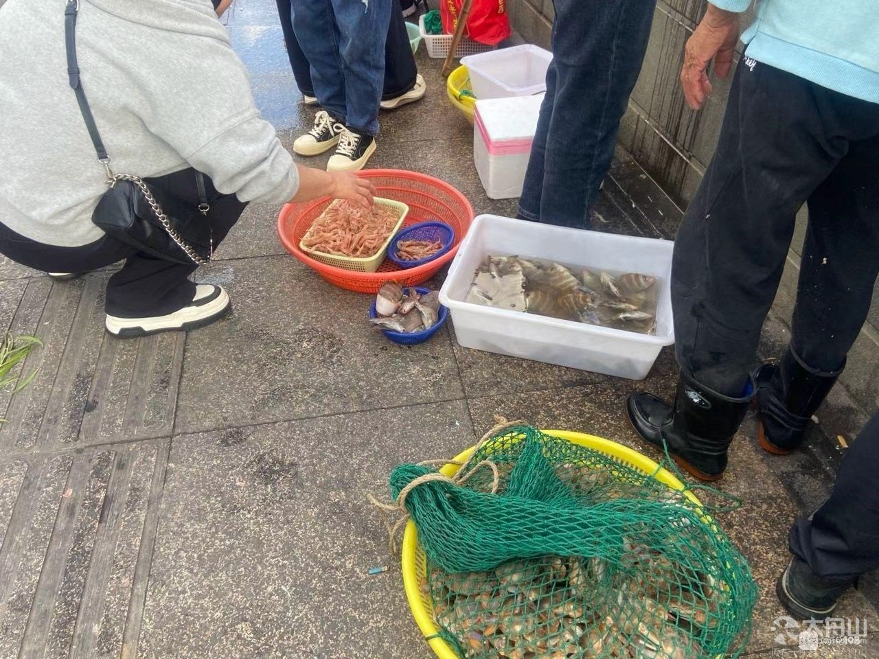 出海的小船回来了,新鲜虾蟹还蛮多,好多人都在买!