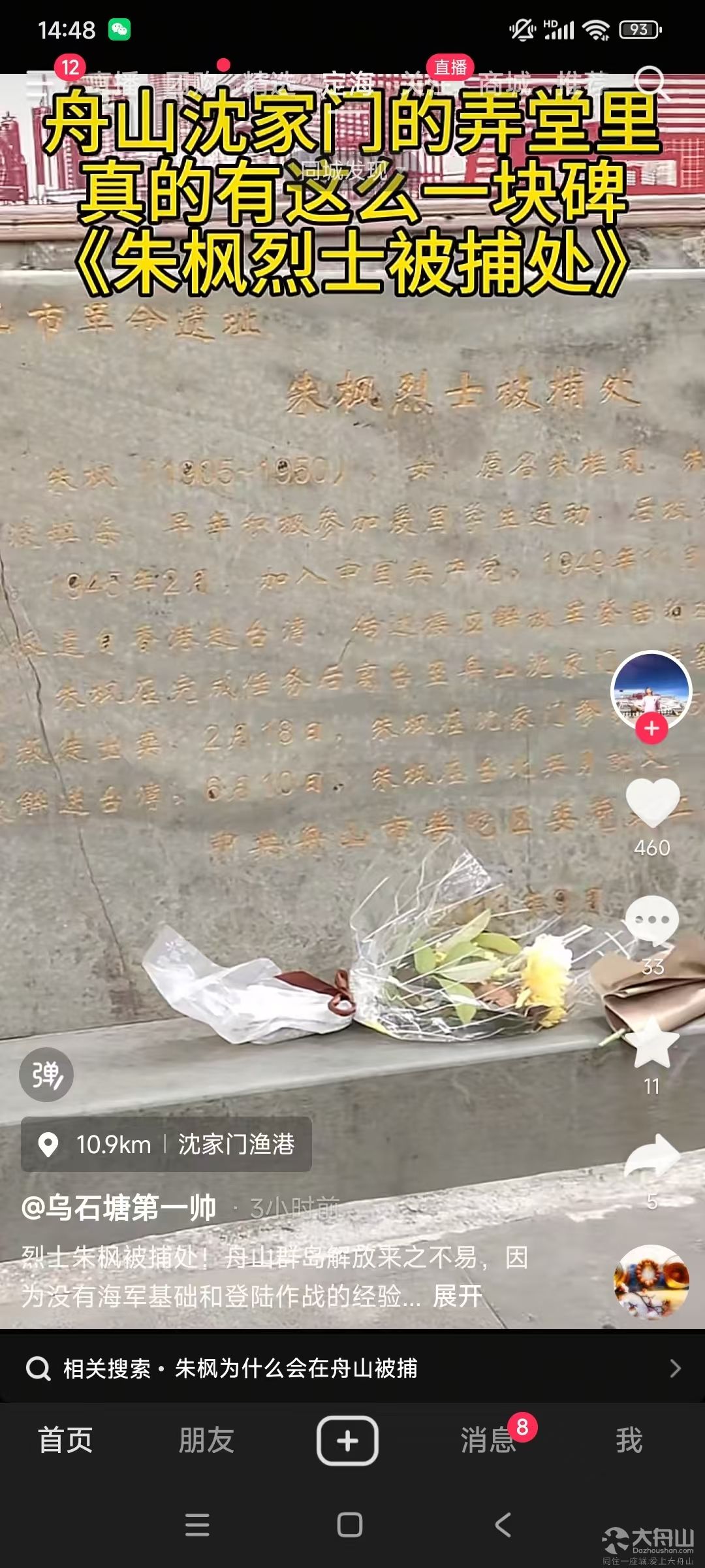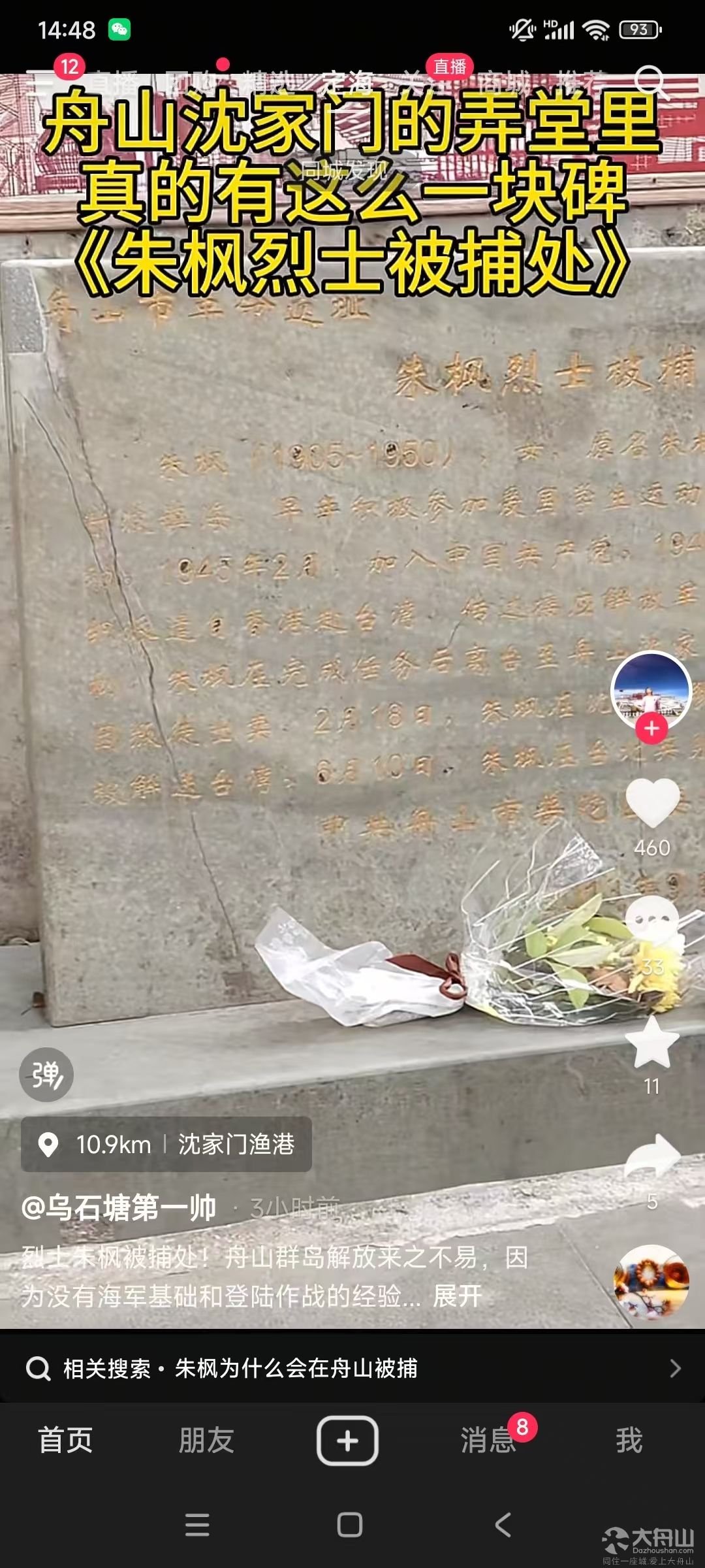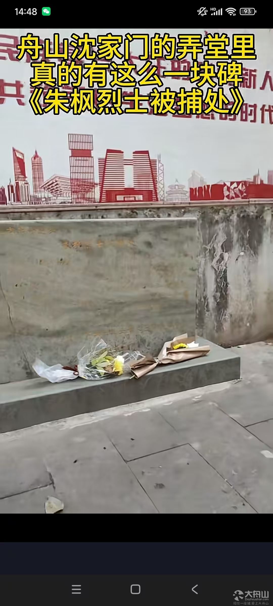 没想到!沈家门真有这么一块碑,《朱枫烈士被捕处》